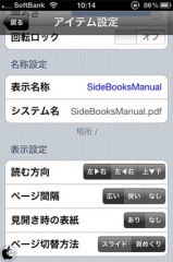 各PDFファイルに対して、画面回転ロック、読む方向、ページ間隔、ページ切替方法を設定することが出来ます。