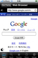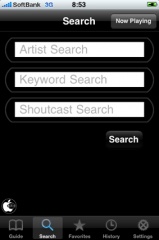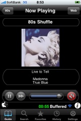 ラジオの再生中に、右上の「Web」ボタンを押すと、FlyCastでラジオを再生しながら、Safariでインターネットを見る事が出来ます。ただし、ブックマーク等の機能は使用できません。