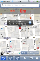 画面下のピンボタンをタップして、現在地にピンを置く事ができるので、別の場所から戻ってくる場合などにも利用出来ます。