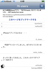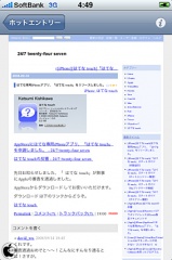 24/7 twenty-four sevenが、iPhone/iPod touch用はてな専用アプリ「はてな touch」を、App Storeにて無料配布を開始したので試してみました。