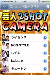 吉本興業が、iPhone 4用カメラアプリ「芸人2SHOT CAMERA」を、App Storeにて販売を開始していたので試してみました。