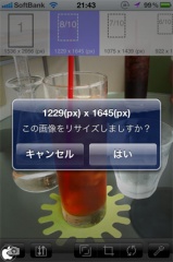 リサイズボタンをタップすると、画面上部にリサイズパターンが表示されるので、その中から好きなサイズを選択すると、自動的にリサイズが実行されます。