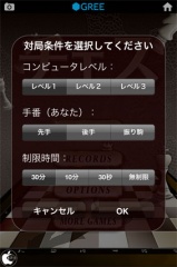 最初に、コンピュータのレベル、手番、制限時間を設定してOKボタンをタップします。