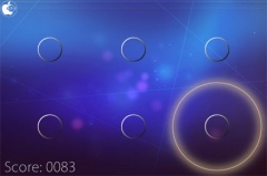 すると6個の円が表示され、曲に合わせて円に波紋が表示されて中央に収縮するので、ピッタリと円に重なるタイミングを判断して円をタップします。