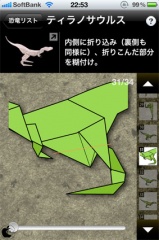 向陽デジタルワークスが、iPhone/iPod touch用折紙恐竜アプリ「折り紙の恐竜」を、App Storeにて販売を開始していたので試してみました。