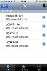 アプリを起動して、静止衛星が一覧表示されるので、位置を知りたい衛星をタップします。