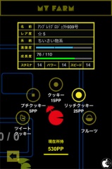 マイファームでは、パックマン達にエサを与えたり、パックマン同士を配合して、新たなパックマンを誕生させたりします。