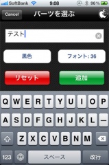 パーツ選択で入力を選択すると、テキスト入力画面が表示されます。