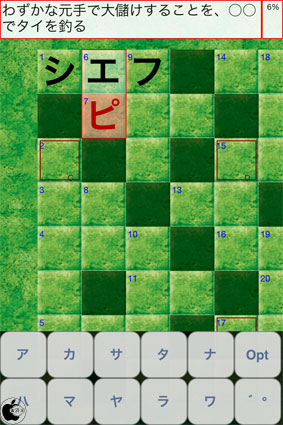 マスをタップすると、そのマスに入る文字のヒントが画面上に表示されます。
