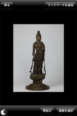 ジャンルにフリ分けされた国宝や重要文化財のサムネイル画像が表示され、その中で見たい収蔵品をタップすると、フル表示されます。