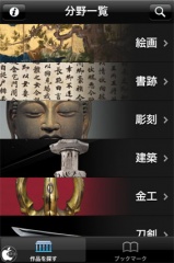 アプリを起動すると、絵画、書跡、彫刻といったジャンルが表示されます。