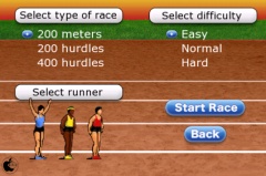 遊べる競技は、200m走、200mハードル、400mハードルの3競技で、レベルも3段階、ランナーも3人から選べます。
