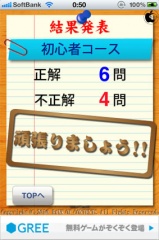 コースを選択すると、直ぐに問題が表示され、画面下の四択の中から正解だと思う意味をタップします。