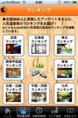 ランキングをタップすると、全国ランキング、東海ランキングなどから温泉施設を探す事が出来ます。