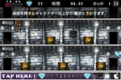 操作は画面をタップするだけで、タイミングを合わせて怪盗ルパンをジャンプさせながら、障害物を乗り越え、アイテムのダイヤモンドを集めます。