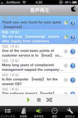 音声再生タブをタップすると、例文の音声が一気に聞ける連続再生機能を利用することも出来ます。