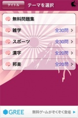 アプリを起動したら、雑学、スポーツ、漢字、邦楽の中から好きなジャンルをタップします。
