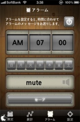 アラームタブをタップすると、決まった時間に体重を計測するためのアラームをセットすることが出来るようになっています。