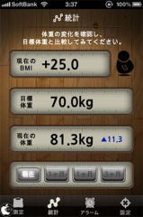 統計をタップすると、記録された体重とBMI数値が表示されます。