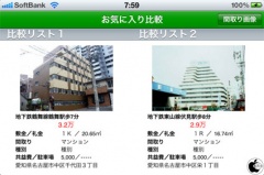 物件情報をお気に入りに登録すると、本体を横表示にして物件比較することが出来るようになっています。