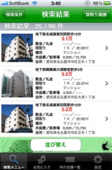 並べ替えをタップして、賃料の高い順、面積が広い順、築年数が新しい順、種別順に切り替える事も出来ます。