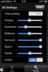 3Dボタンをタップすると、サウンドがサラウンド再生されます。