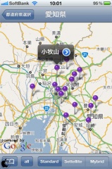 Googleマップが起動して、桜スポットがピンで表示されます。