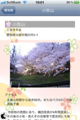 ピンをタップすると、桜開花時期や見所などを読む事が出来るようになっています。