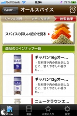 スパイス大辞典をタップすると、スパイスに関するいろいろな情報を見る事が出来ます。