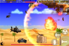 横スクロール系シューティングゲームで、操作は、攻撃ヘリコプターを指でタップして移動させながら、敵戦闘機などをシューティングします。