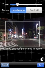 それを何度か繰り返し、アクションボタンを押して、パノラマ画像をで切り抜いて保存します。