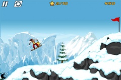 スノーボードに乗る選手を操作して、雪山を走り続けるゲームアプリです。