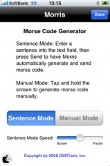 DSRTechが、iPhone/iPod touch用モールス信号アプリ「Morrisicon」を、App Storeにて無料配布を開始したので試してみました。