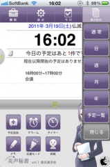Zero One Entertainment LLCが、iPhone/iPod touch用スケジュール管理アプリ「美声秘書 Vol.1 真田真安佐」を、App Storeにて販売を開始していたので試してみました。