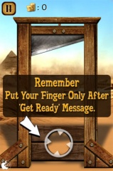ゲームは、ギロチンの穴に指を置きます。