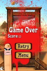 成功すると得点が加算され、失敗すると血が飛び散ります。