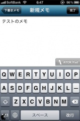 ATOK Pad連携をオンにすると、新規メモの記入欄に、ATOK Padタブが表示され、ATOK Padとの連携機能が利用出来ます。