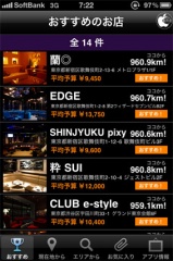 アプリを起動して、現在地情報を取得し、近隣のキャバクラ店リストが表示されます。
