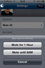 このアプリでは、特定のPodに対して、一定時間アラート表示を抑制する「Mute」を設定することが出来ます。