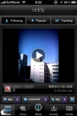 Viddy, Incが、iPhone/iPod touch (4th generation)用動画SNSアプリ「Viddy」を、App Storeにて無料配付を開始していたので試してみました。