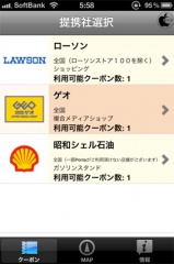 クーポンをタップすると、提携各社の中で、利用できるクーポン提供会社が表示され、クーポンを利用することが出来ます。