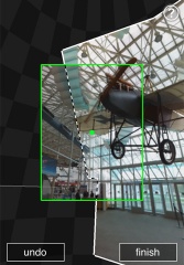 画面をタップして撮影を行い、撮影されたプレビュー写真からずらして再び撮影を行い続け、それらの写真を合成してVR写真を作成することが出来ます。