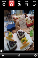 AccuSmart CameraのUIが独特で、分かりずらかった部分を一新し、標準、美肌、料理、夜景とシーンボタンを選ぶだけで補正が行えるようになっています。