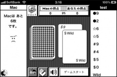 ゲームスタート時に7枚のカードが配られ、コンピューターと1対1の対戦となります。
