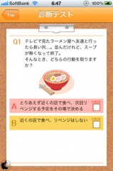 診断するをタップして、出題されるテストに対して、選択式で回答を行っていきます。