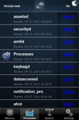 Processesをタップすると、起動中のアプリやプロセスが表示され、プロセス ID 番号も表示されます。