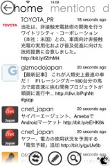 画面をフリックすると、@関連、DM、リストなどを切り替える事が出来ます。
