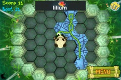 パンダから伸びる竹を、六角形マスを使って、どれだけ繋げられるかを競うパズルゲームアプリです。