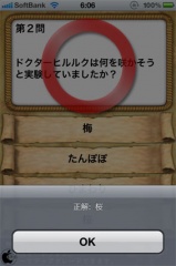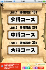 2011年05月01日(日) iPhone App Store#iPhone#iPod_touch#海賊王クイズ ONE PIECEクイズゲームアプリ「海賊王クイズ」を試す ※本サイトは、アフィリエイト広告および広告による収益を得て運営しています。購入により売上の一部が本サイトに還元されることがあります。 海賊王クイズ eマッチが、iPhone/iPod touch用クイズゲームアプリ「海賊王クイズ」を、App Storeにて無料配付を開始していたので試してみました。 尾田栄一郎著の大人気漫画「ONE PIECE」に関するクイズゲームアプリです。 コース選択をタップして、少将、中将、大将の3つのコースから好きなコースを選択します。 出題される質問に対して、4択式で回答を行っていきます。 10問問題が終了すると、レベルが表示されます。 10問中8問に正解すると懸賞金が獲得出来るようになっています。 ↓の評価ボタンを押してランキングをチェック!