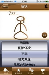 症状を選択すると、高血圧、不眠など、ツボの効果が期待で来そうな症状が選べます。
